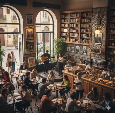 Au Café Culturel, la parole se côtoie avec la musique et les arts dans un cadre chaleureux et stimulant, animé par des soirées poétiques, des lectures publiques, des concerts intimistes et des ateliers créatifs. Chaque événement est conçu pour favoriser les échanges interculturels et permettre aux participants de découvrir de nouvelles perspectives artistiques et culturelles.