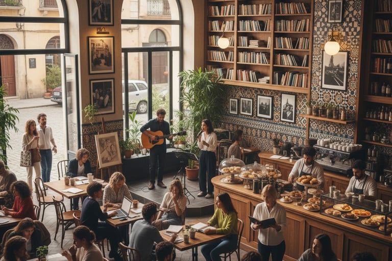 Le Café Culturel du Centre Culturel Arabe de Lisbonne est un lieu unique de rencontre, de dialogue et de créativité partagée entre artistes, écrivains et amateurs d’art. C’est un espace où l’expression artistique sous toutes ses formes trouve sa place, mêlant paroles, musiques, arts visuels et performances littéraires dans une atmosphère conviviale et inspirante.