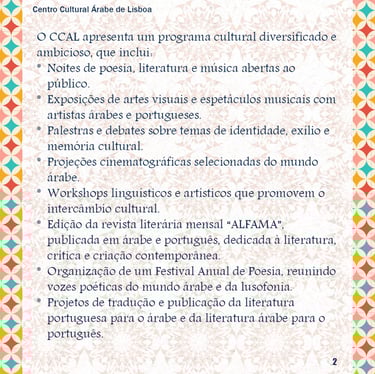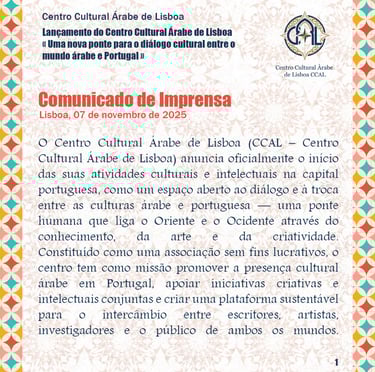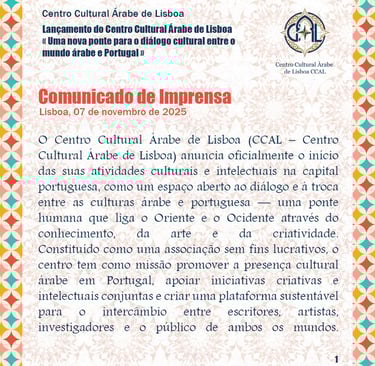 🏛️ O Centro Cultural Árabe em Lisboa abriu as suas portas para promover o diálogo cultural entre o mundo árabe e Portugal através das artes, da literatura, da música e de oficinas culturais.